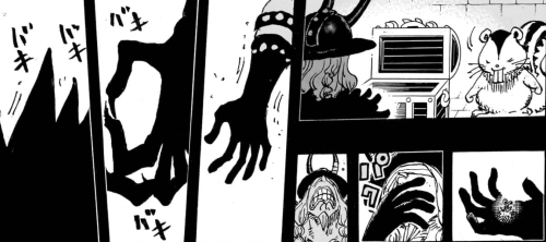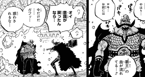 しかし先のロキの変化態による攻撃には「覇王色の覇気」が込められていなかったため、みるみる再生するハラルドの肉体。左腕が完全に再生する頃には精神汚染が再開される。