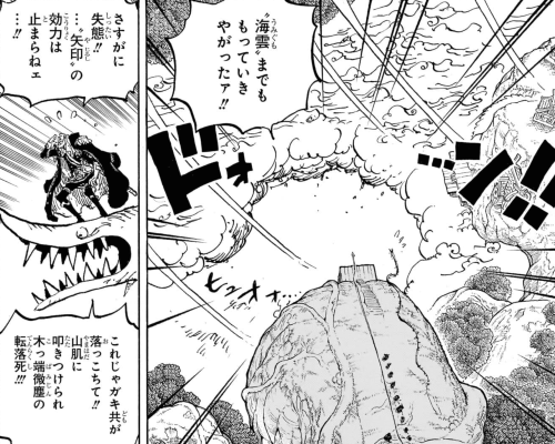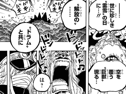 先日ロキがMMAを凍らせた技が「悪魔の実」由来であれば、その「悪魔の実」はラグニルを味方につけなければ食べることができないのだから、空を覆う“巨獣”の能力者は氷(冷気)と雷をどちらも使えることになる。