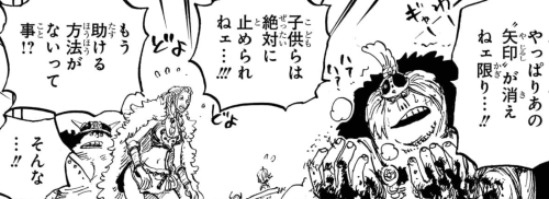 両腕を捨てる覚悟で孫を止めようとしたオイモは、イバラを解くことも止めることもできず、痛がる孫の言葉に手を離さないわけにはいかなかった。